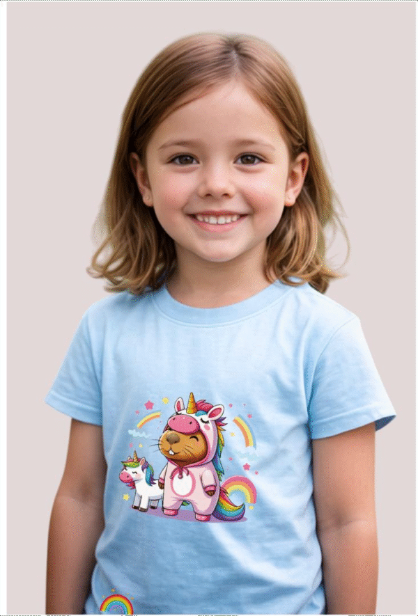 2. Los estampados de la parte inferior derecha, son totalmente aleatorios (huella, hueso, orejitas, arcoíris, etc.), solo el estampado principal (centro de la camiseta) se mantiene tal cual la imagen de referencia.